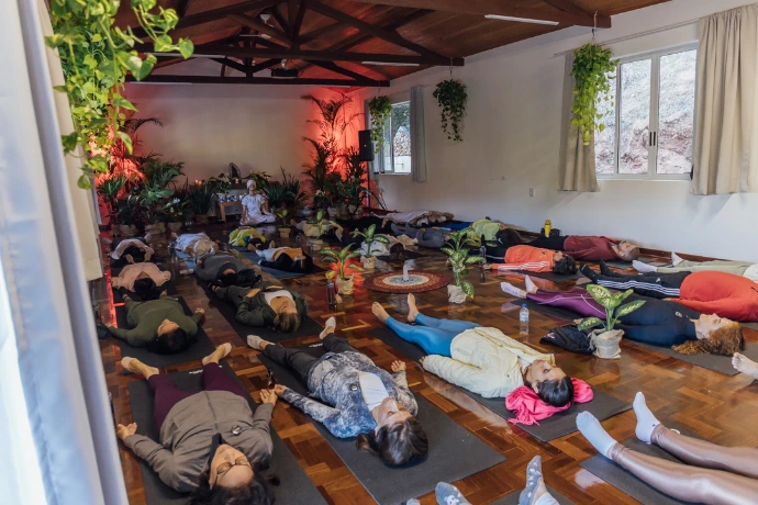 O corpo é o ponto de partida; a respiração é o caminho de autorregulação. Aqui, praticamos variadas modalidades de yoga, nos equilibrando por meio de asanas, meditações, pranayamas e mantras.